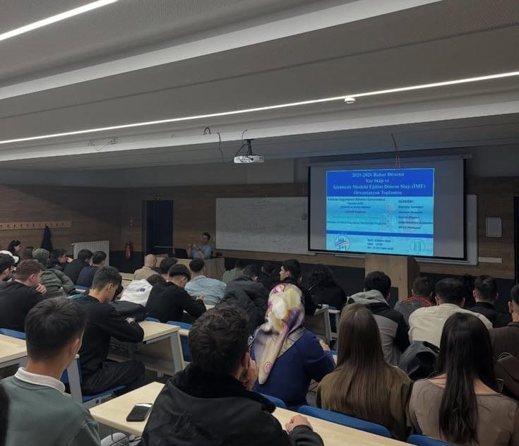 Bölüm Başkanı Öğr. Gör. Dr. Alper Turan Ergüzel tarafından gerçekleştirilen toplantıda, staj sürecinin işleyişi, başvuru adımları ve staj yapılabilecek işletmeler hakkında detaylı açıklamalar yapıldı. Ayrıca staj süresince dikkat edilmesi gereken önemli noktalar ve İşletmede Mesleki Eğitim uygulaması hakkında bilgi verildi.