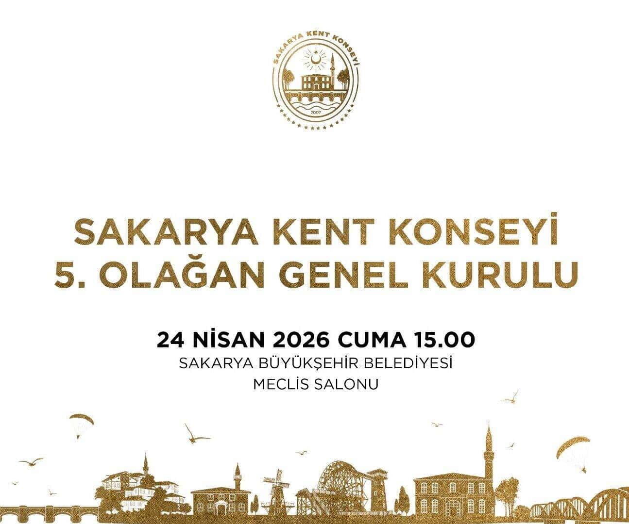Sakarya Kent Konseyi, şehirde katılımcı yönetim ve ortak akıl için önemli bir platform olarak öne çıkıyor. Konseyin 5. Olağan Genel Kurulu, 24 Nisan Cuma günü Büyükşehir Belediyesi Meclis Salonu’nda saat 15.00’te başlayacak.